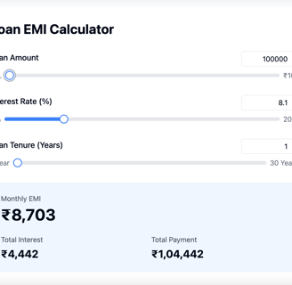 It’s completely free, and you can use it as many times as you want. Change the amount, tweak the interest rate, play with the tenure — the EMI Calculator gives you instant answers so you can make confident decisions.