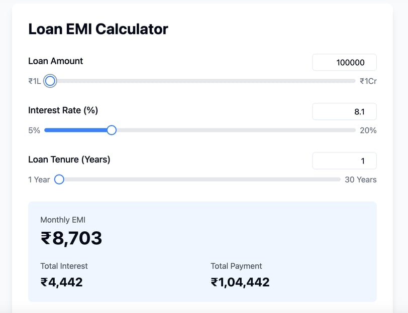 Think of it as your personal finance buddy. You just punch in the loan amount, interest rate, and tenure — and it tells you how much you'll need to pay every month. No confusing math, no spreadsheets. Just quick, clear answers.